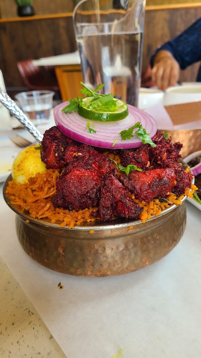 One of the standout features of this restaurant is its extensive menu, which includes mouth-watering appetizers like Veg Samosa and Cauliflower 65, alongside hearty entrees such as Butter Chicken and Chettinaad Goat Curry. However, the true stars here are the biryanis. With options like Hyderabad Chicken Dum Biryani and Thalapakattu Goat Biryani, each dish is a celebration of flavors, expertly crafted to ensure that each bite is a delightful experience.